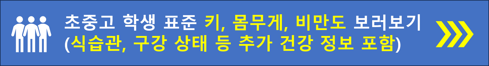 교육부에서 학교 신체 검사 결과를 바탕으로 분석한 대한민국 초등학생, 중등학생, 고등학생의 표준 신체발달 상황 통계치입니다.