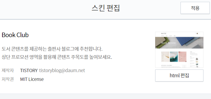 소스 붙이고 나와서 스킨 편집 옆에 있는 적용 완료 버튼을 눌러주세요