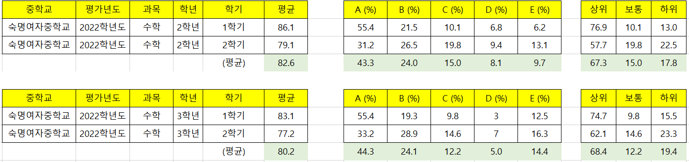 3. 숙명여중 수학 학업성취도 (22년 기준)