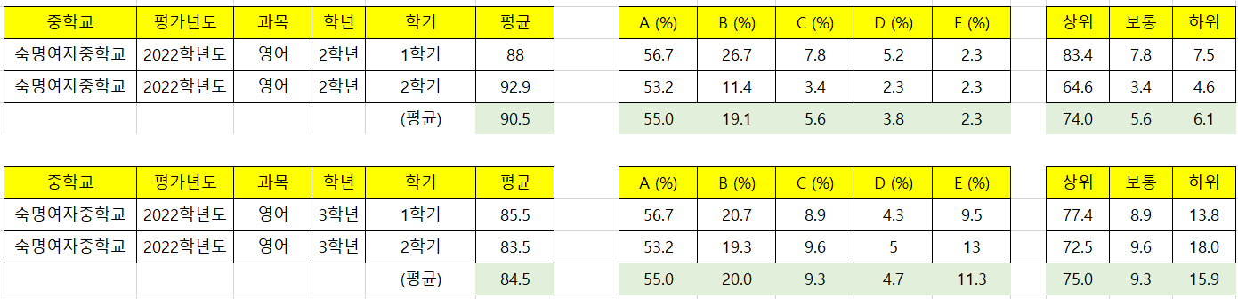 4. 숙명여중 영어 학업성취도 (22년 기준)