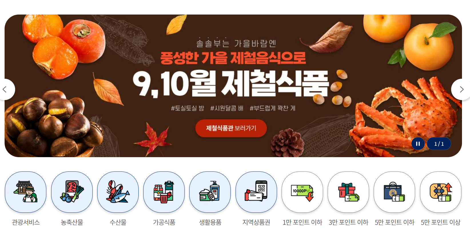 답례품몰에서 원하시는 상품군을 선택하시거나 생각해 본 지방자치단체를 입력해보세요