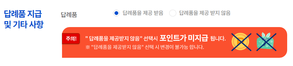 6) 답례품은 꼭 지급 받겠다고 설정이 되어 있습니다. 다시 한번 확인해 주세요.
