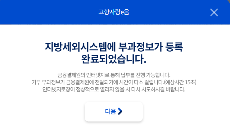 10) 다 납부가 끝났으면 고향이음 페이지에 납부 내역이 반영되어 있는지 마이페이지에 들어가 보세요.