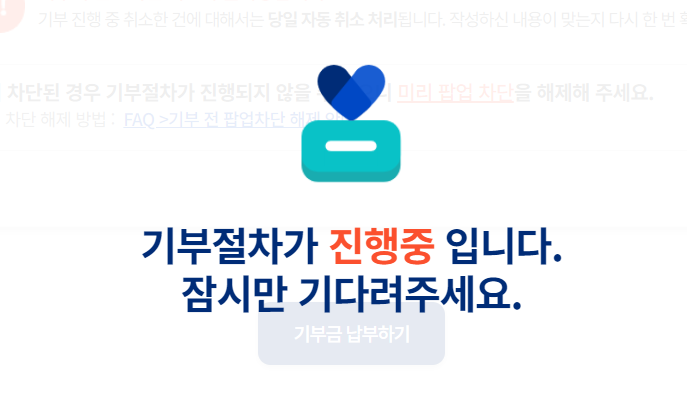 PC 메인 화면의 아래쪽에 파란 버튼 '기부하기' 누르기 |
