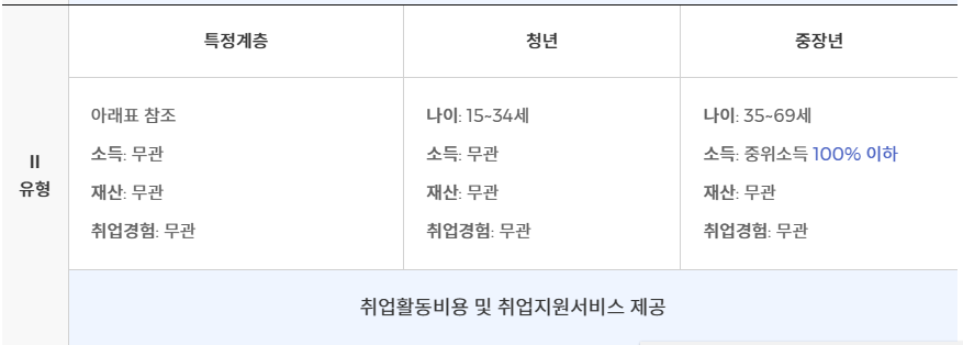 - 1유형에 해당하지 않는 특정 계층, 청년, 중장년 (특정 계층과 청년은 소득 수준 무관)