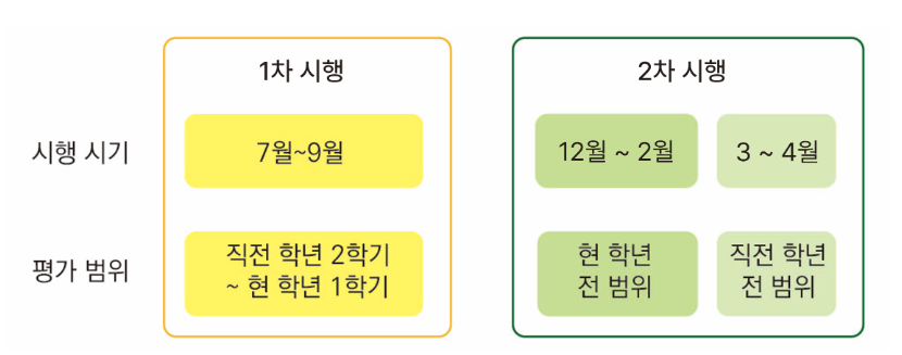 - 2차 시행은 12월~2월에 현 학년의 1,2학기 전범위에 대해 평가합니다.