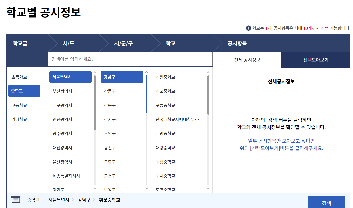 학교 알리미 사이트에서는 학교와 관련된 다양한 정보가 공지되어 있습니다.