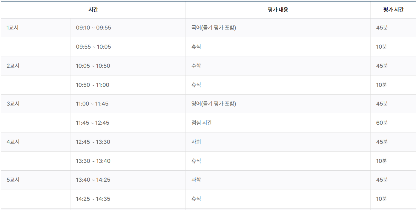 - 평가 시간은 각 과목별 45분 입니다.